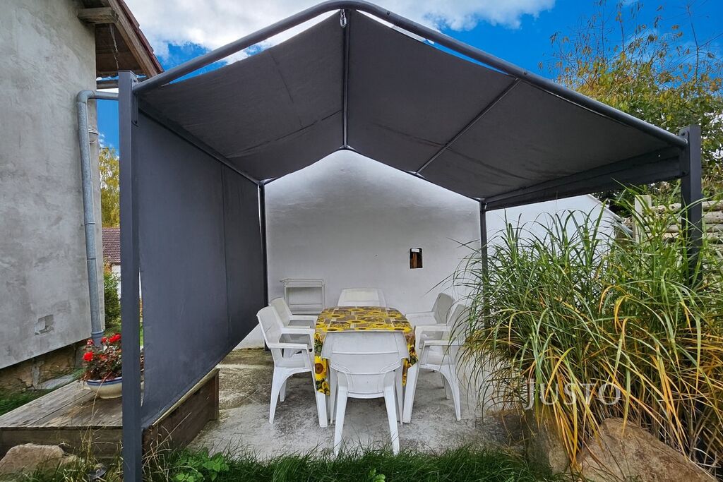 Na udržované zahradě je nadzemní bazén a několik okrasných dřevin. Celkově působí dům velmi útulně a klidně – ideální prostředí pro rodinnou rekreaci nebo pohodové trvalé bydlení. V posledních letech využíval majitel dům ke krátkodobým, rekreačním pronájmům. V případě zájmu je možné stejné využití.