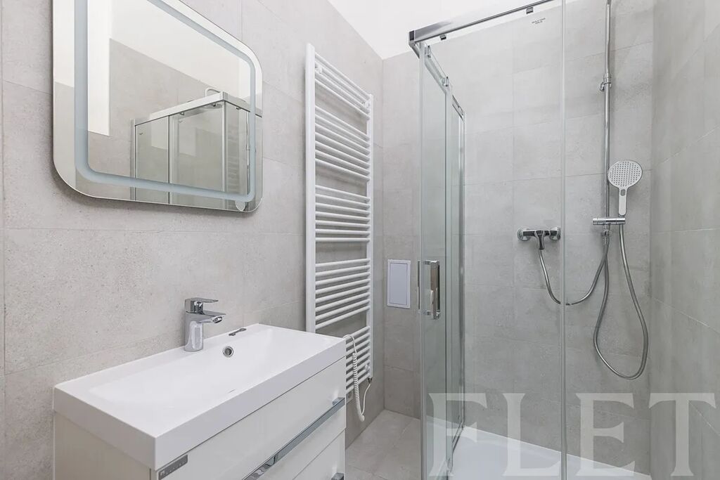 V hlavní místnosti vás uvítá kuchyňský kout vybavený myčkou nádobí, elektrickou troubou, varnou deskou a vestavěnou lednicí, jejíž součástí je velký mrazák. V této místnosti je dostatek prostoru pro jídelní i obývací část. Druhý pokoj může sloužit jako útulná ložnice s výhledem do zeleně. Moderní koupelna se sprchovým koutem je oddělena od samostatné toalety. V bytě se nachází také pračka, umístěna v předsíni. Mezi další výhody patří balkón s výhledem na klidný a udržovaný zelený parčík, a také sklep, který vám poskytne další úložný prostor.