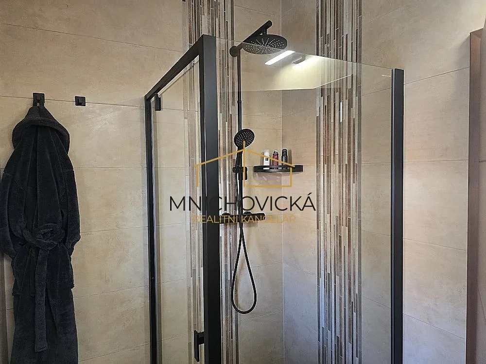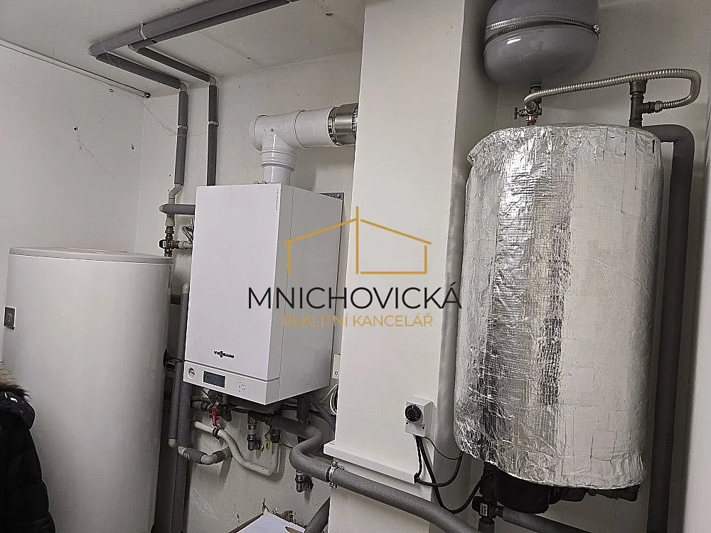 Celé přízemí je otevřené, světlé, dispozičně velmi zajímavě řešené, s výstupy na prostornou terasu 60 m2, zhotovenou z velmi tvrdého, tropického dřeva Garapa. V obývacím pokoji nechybí moderní krb, vytápění domu zajišťuje plynový kotel s napojením v přízemí na podlahové vytápění, v patře na radiátory, centrálně ovládané prostřednictvím aplikace např. přes mobilní telefon.