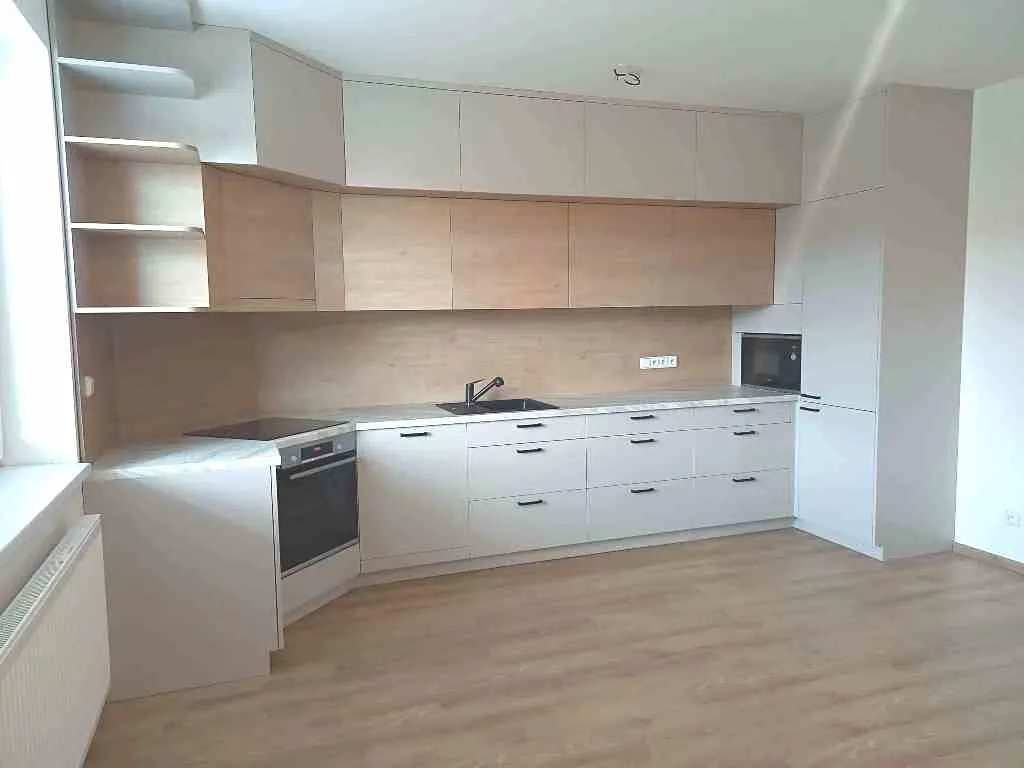 Nemovitost je vybavená kuchyňskou linkou, zhotovenou na zakázku, obsahuje veškeré kuchyňské spotřebiče - indukční varnou desku, digestoř, el. troubu, mikrovlnnou troubu, myčku, lednici s mrazákem - vše je necelé 2 roky nové. Oststní vybavení obytných pokojů na fotografiích jsou pouze vizualizace možného budoucího vzhledu.