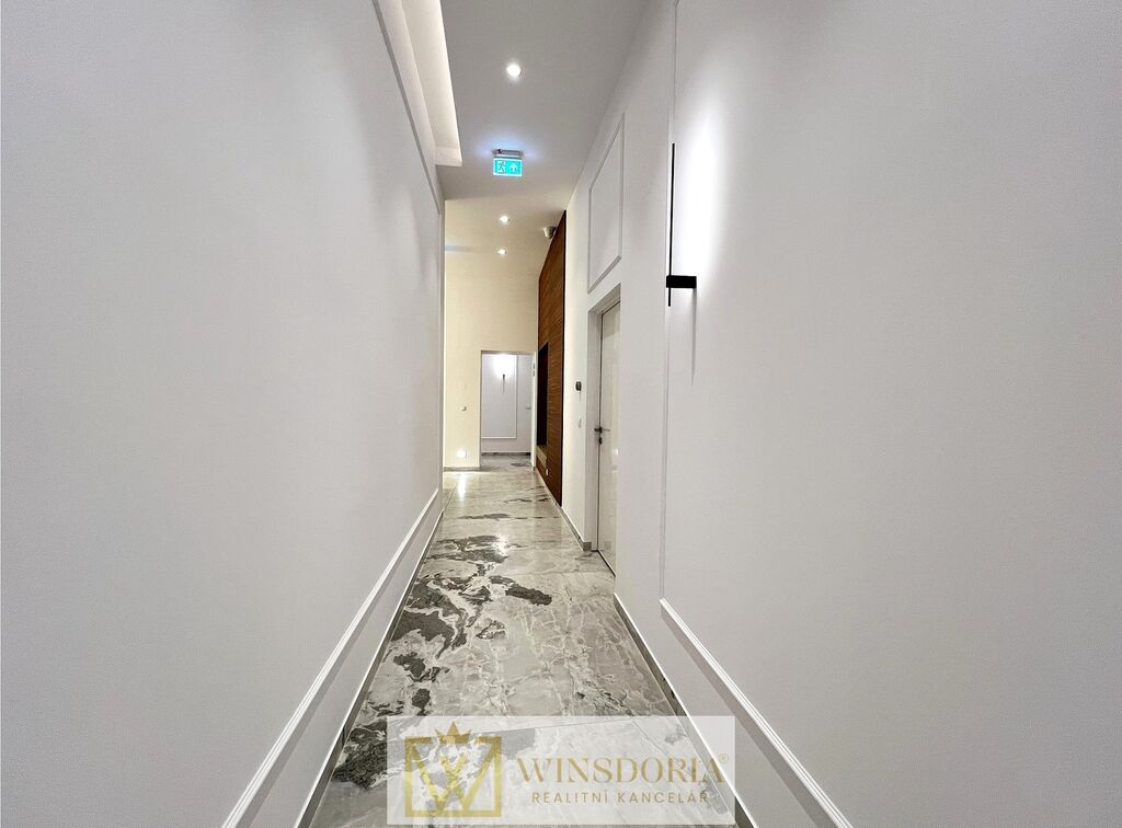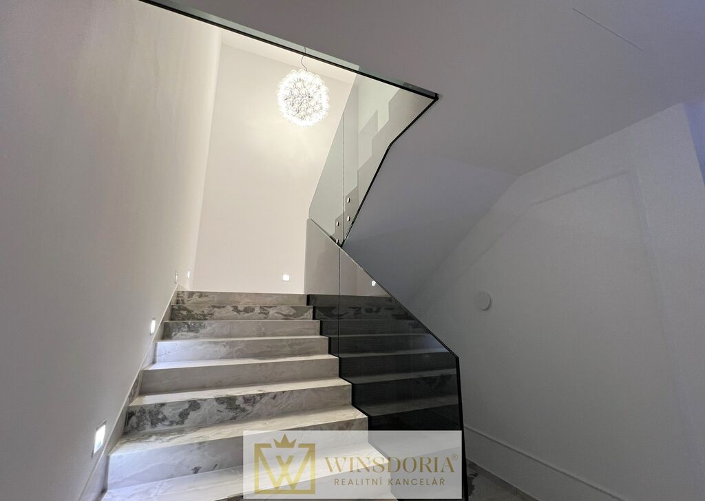 Interiér byl navržen s maximální pečlivostí a důrazem na detail. Kombinace designového nábytku a retro prvků vytváří harmonii stylu a funkčnosti. Kuchyně je vybavena špičkovými spotřebiči Miele, vytápění zajišťují tepelná čerpadla a v koupelnách je instalováno podlahové vytápění.