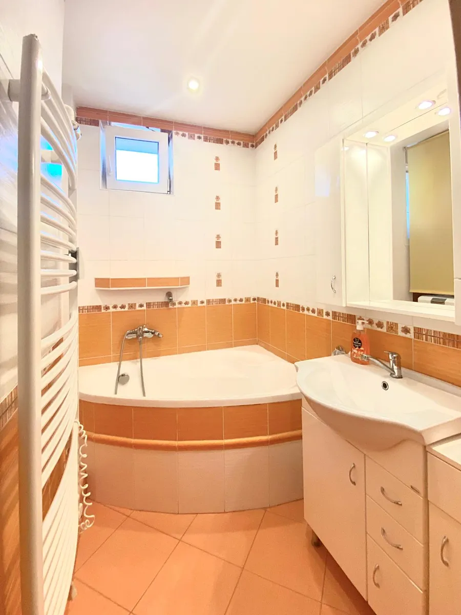 Vybavení: kuchyňská linka, myčka, trouba, mikrovlnná trouba, varná deska, digestoř, pračka, vestavná skříň, nábytek v obývacím pokoji