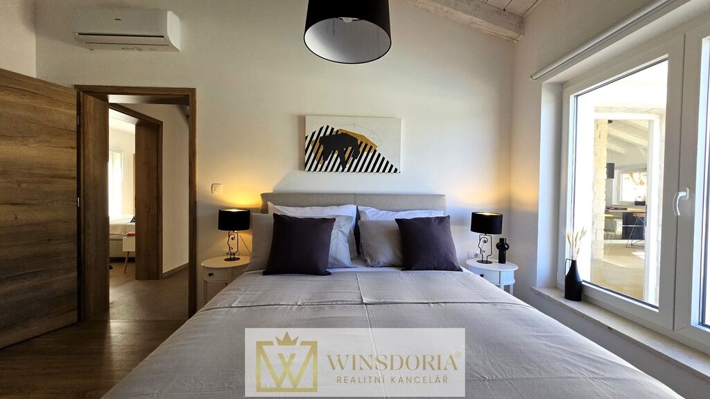 Vila o rozloze 200 m² byla postavena z autentického istrijského kamene Kanfanar a nabízí veškeré pohodlí pro klidné bydlení či nezapomenutelnou dovolenou.
