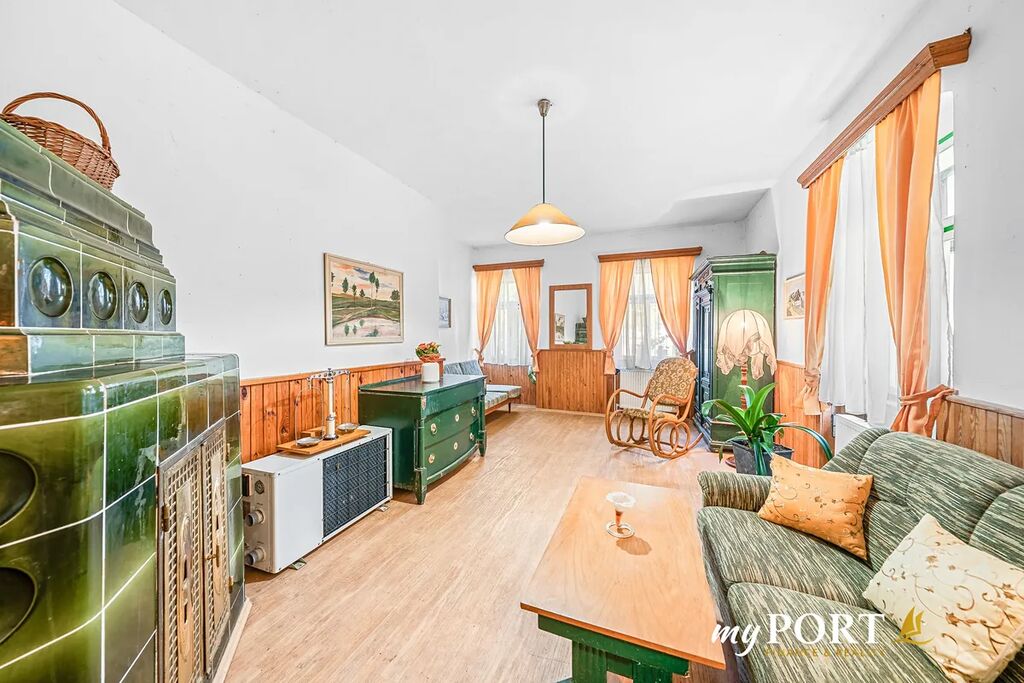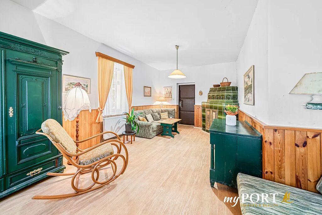 • hostinský pokoj s kachlovými kamny a stylovým nábytkem