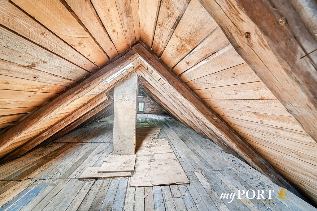 Podkroví je přístupné po pohodlném dřevěném schodišti a nabízí rozsáhlé prostory, fotokomoru, úložné místnosti a vstup na terasu s výhledem do horní zahrady.