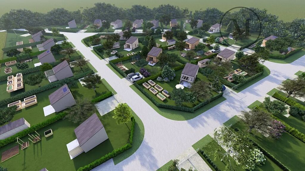 Každá zahrádka má minimálně 400 m², je oplocena a součástí je designový zahradní domek. Zahradní domek je dřevostavba se železobetonovou základovou deskou o zastavěné ploše 20 m² a výšce 4,5 m. Domek je vybaven okny s izolačními dvojskly, dlažbou v přízemí a dřevěnou podlahou v horní části. Vnitřní stěny jsou z OSB desek s výmalbou, což vytváří útulný a praktický interiér. Dominantou každého domku jsou velké terasové dveře se vstupem na terasu o ploše 9 m², doplněné o okenice tvořící při otevření postranní clonu, která zaručí dostatek soukromí. Střešní krytinu tvoří falcovaný plech, na který je možné umístit FVE panely.