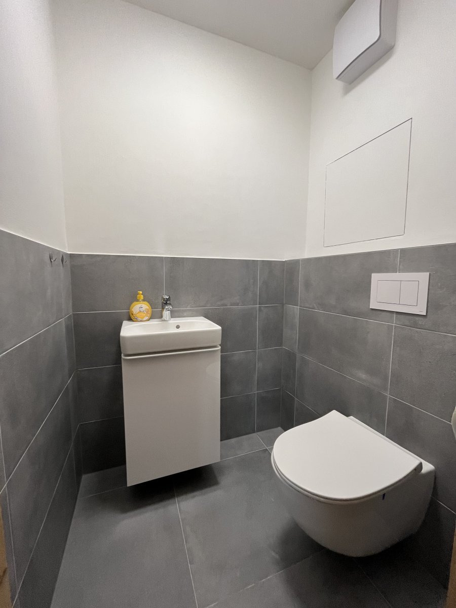 Koupelna je vybavena zrcadlem, skříňkou pod umyvadlo, sprchovým koutem a přípojkou na pračku. Toaleta je umístěna samostatně. Prostorná obývací část je nezařízená. Ložnice s francouzským oknem disponuje bohatým výhledem a zajišťuje dostatek místa na postel, komodu a šatní skříň.