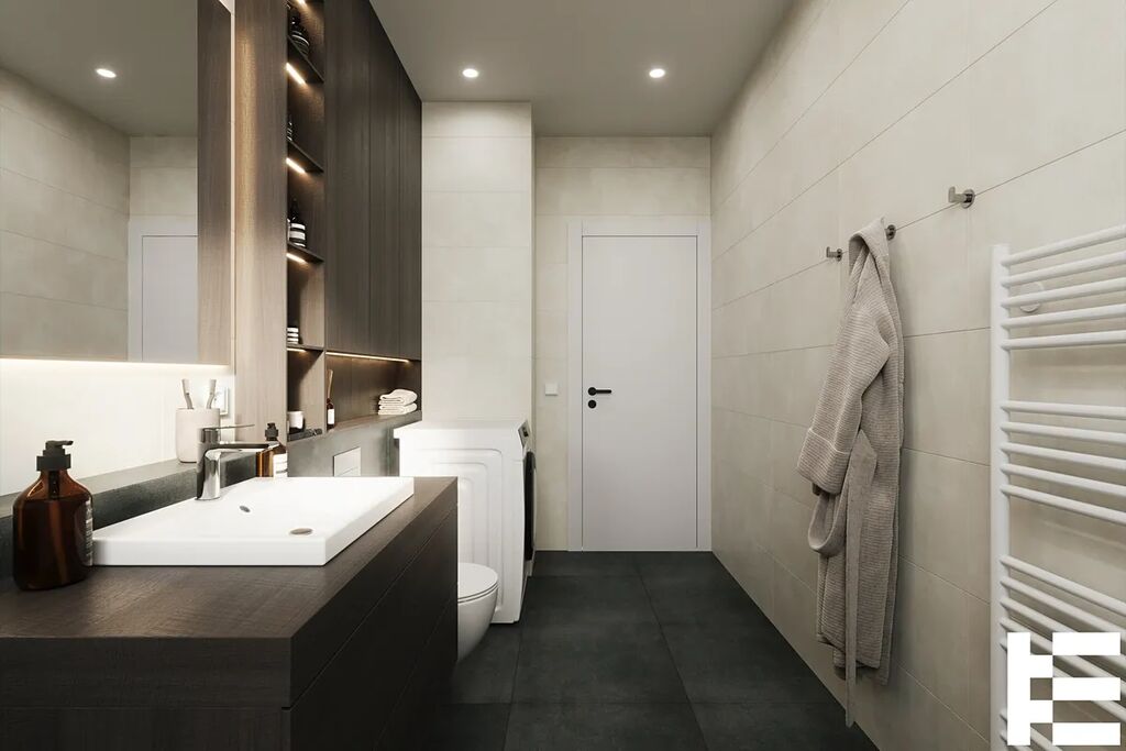 Byt zaujme vysokými stropy, které umocňují vzdušnost interiéru, a velkoformátovými okny s jižní orientací, díky nimž je prostor krásně prosvětlený. Součástí bytu je i útulná lodžie, ideální k ranní kávě nebo večernímu odpočinku.
