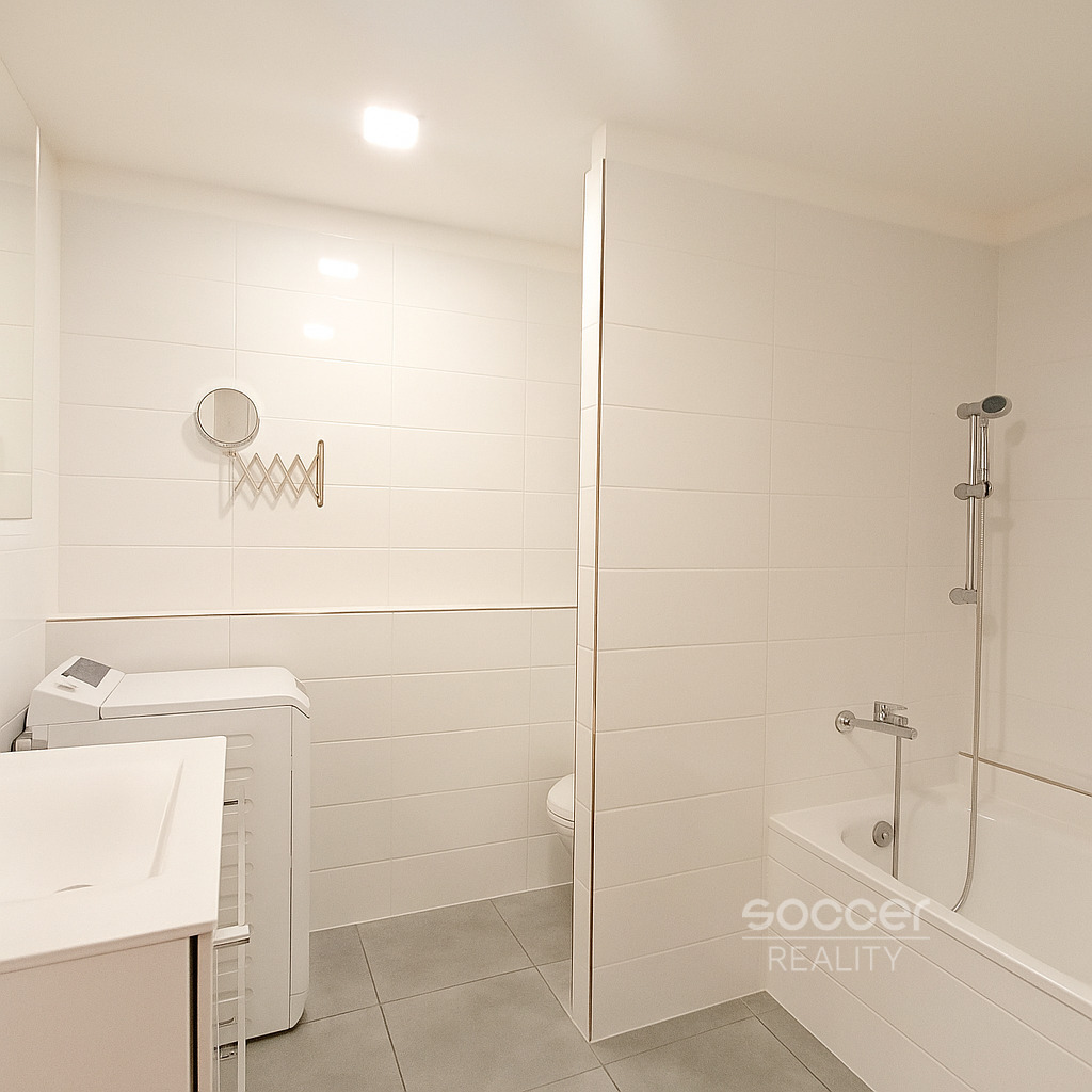 Součástí je světlá, prostorná kuchyňská linka se všemi spotřebiči, koupelna s vanou a WC, pračka.