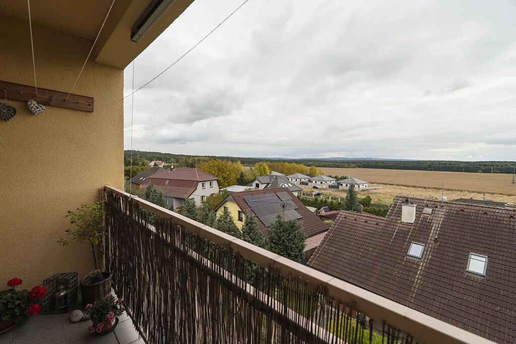 • balkon orientovaný na jih s krásným výhledem a přidanými roletami pro případné zastínění