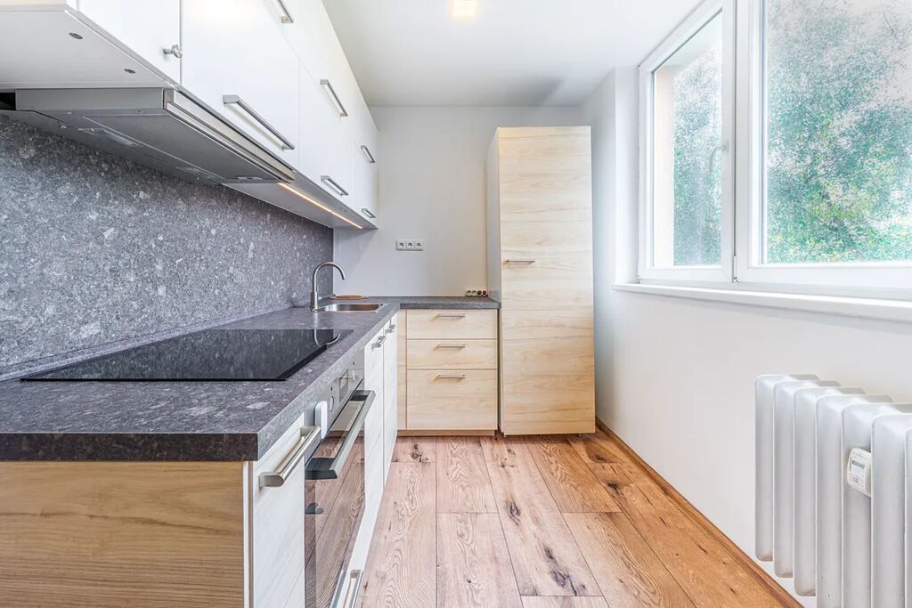 Během kompletní rekonstrukce bytu byly vyměněny rozvody elektřiny. Dům prošel revitalizací rozvodů vody a tepla, takže máte jistotu moderního a bezpečného bydlení na dlouhá léta. V pokojích jsou renovované původní parkety, které dodávají bytu elegantní a útulný charakter. V ostatních místnostech je položena praktická a stylová vinylová podlaha. Součástí bytu je také nová kuchyňská linka, která je moderní a funkční.