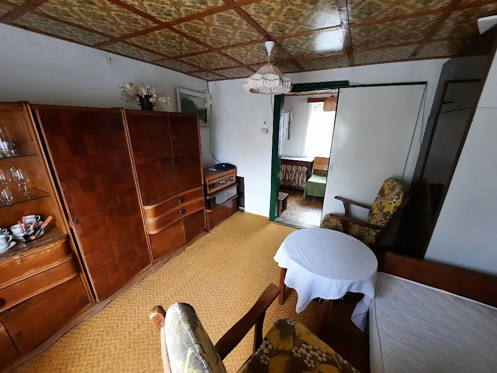 Nabízíme k prodeji chatu o zastavěné ploše 52 m2 a zahrady o velikosti 1.349 m2, který se nachází v klidné části za obcí v chatové oblasti Bába. Celková plocha pozemku je 1.401 m2. Chata je zděná v původním, ale udržovaném stavu, připojení na 230V/400V, s vlastní studnou s rozvodem o chaty (pohon je čerpadlo). V přízemí chaty je kuchyňka, jídelna, ložnice, koupelna se sprchovým koutem a WC. V patře je jedna ložnice a prostor na ukládání věcí. Sklep je suchý cca 3 x 2 m2. Odpad je řešen žumpou. Studna je kopaná do hloubky 14,5 m. Přístupová cesta je obecní.