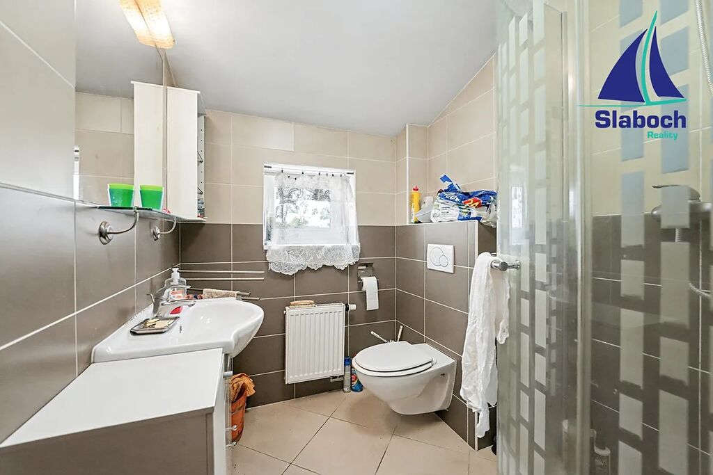 V domě 3 koupelny a 3 toalety, dům je z části podsklepen, parkování pro 3 auta.