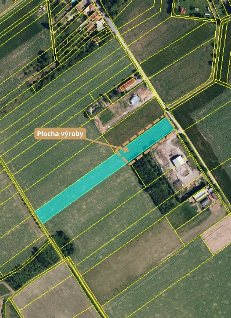 Pozemek je ideální volbou jak pro investory, tak pro ty, kteří chtějí rozšířit svoji výrobu či s výrobou teprve začít. Pozemek je v územním plánu veden jako plocha smíšená výrobní s označením .107 a poskytuje šířku cca 25 m a dostatečnou délku 104 m pro stavbu výrobního/skladovacího/komerčního zázemí. Celková plocha je zhruba 2 500 m2.