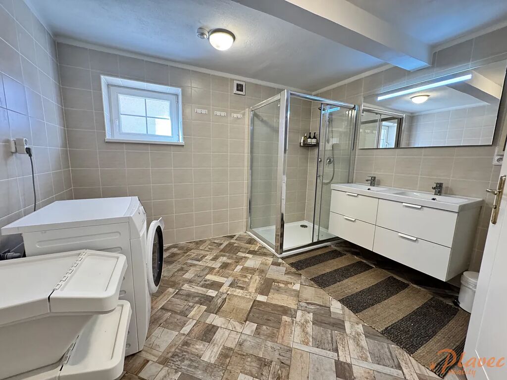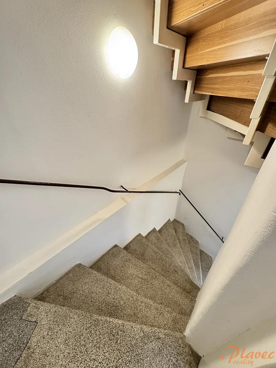 Dispozice: Suterén - pokoj se vstupem na zahradu, koupelna se sprchovým koutem, skladovací prostor.