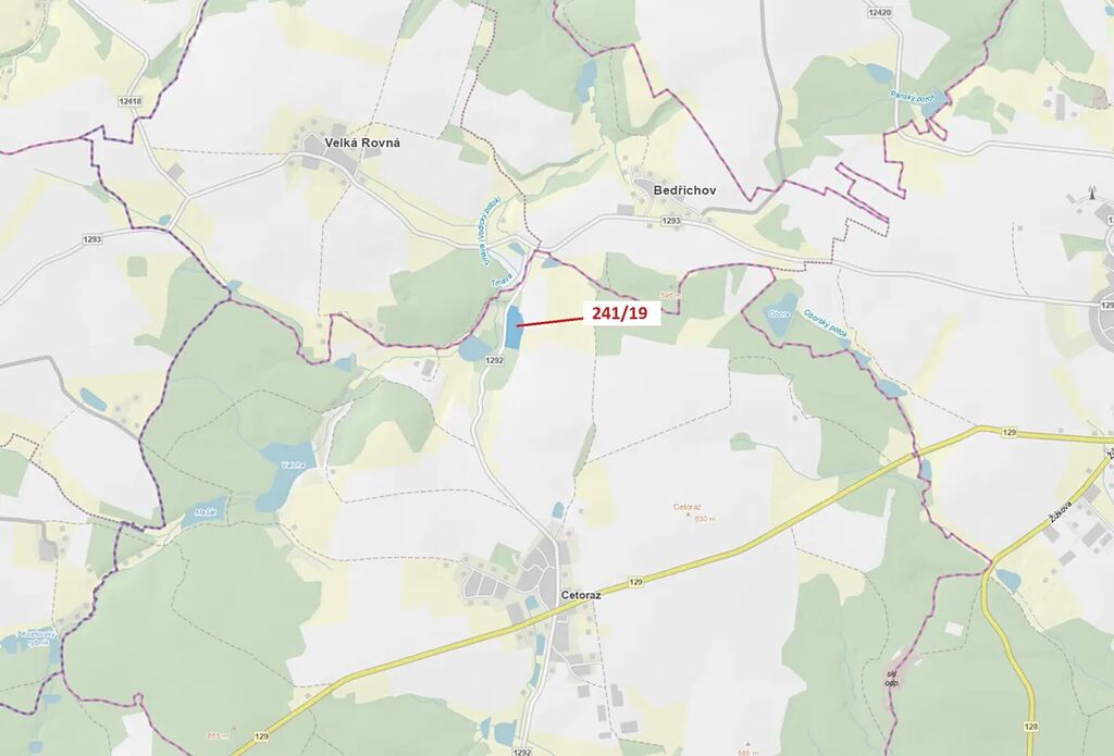 Lesní pozemek o výměře 17 171 m2, parcelní číslo 241/19, podíl 1/1, katastrální území Cetoraz, obec Cetoraz, obec s rozšířenou působností Pacov, okres Pelhřimov, Kraj Vysočina. Po těžbě.