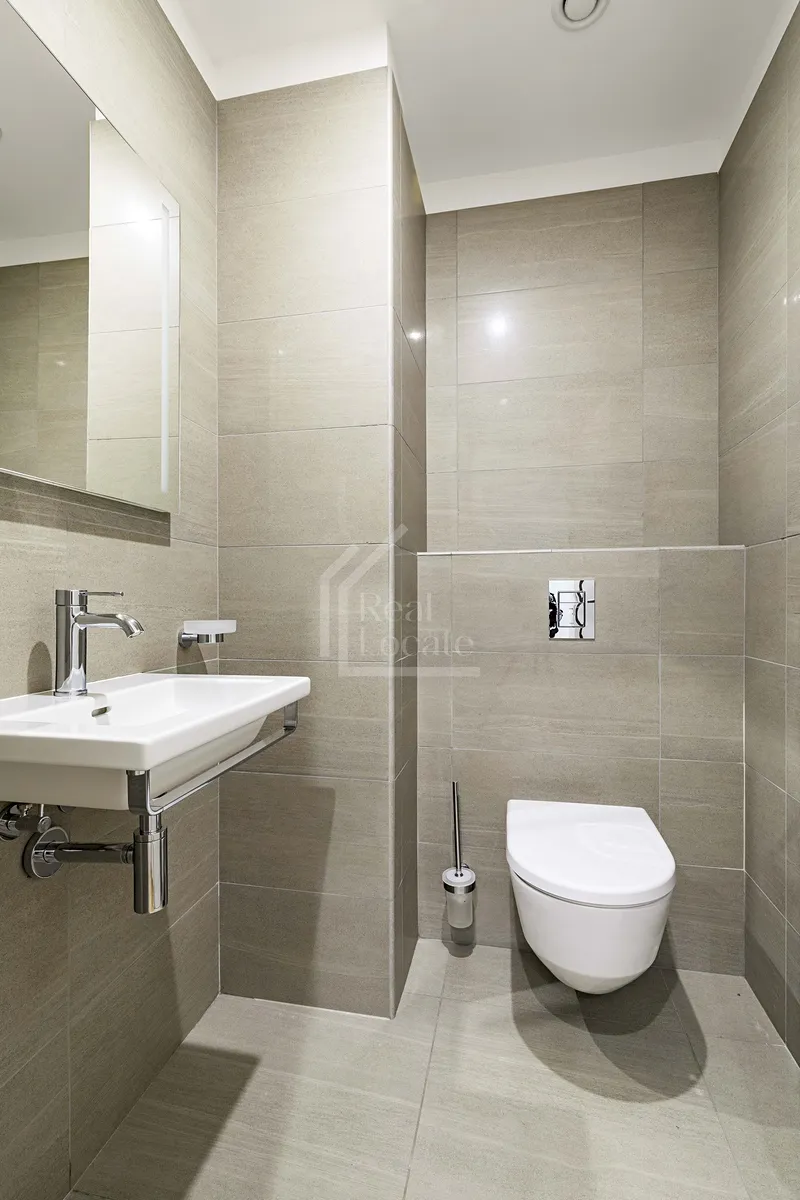 K dispozici jsou dvě elegantní koupelny s vanou, kvalitní sanitou a dostatkem úložného prostoru. Promyšlené dispoziční řešení bytu vytváří vzdušný a harmonický domov s dostatkem světla po celý den.