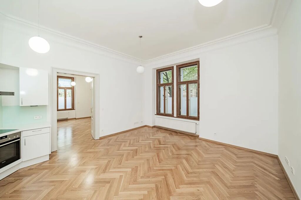 Nabízíme k pronájmu elegantní byt 2+kk (1 ložnice, 1 koupelna), o celkové ploše 68m2, situovaný v 1. NP (přízemí), v kompletně zrekonstruovaném rezidenčním secesním domě, v prestižní lokalitě nedaleko Riegrových sadů, v ulici Balbínova Praha 2, Vinohrady.