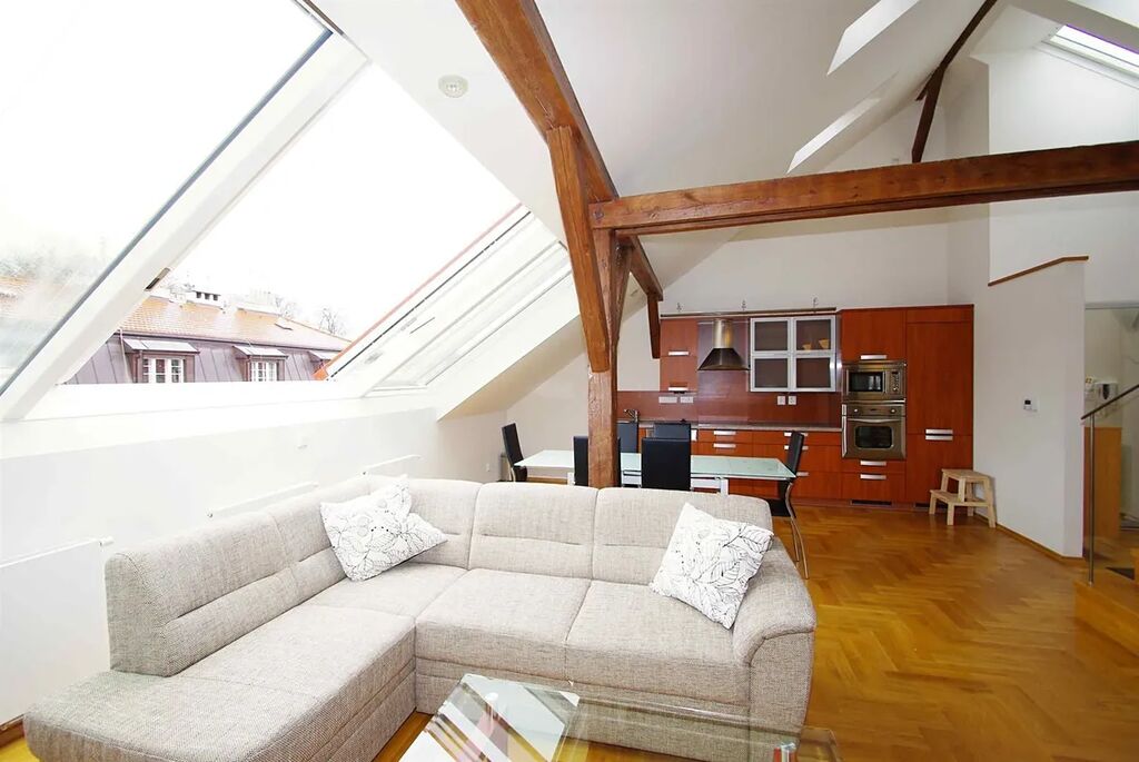 Nabízíme k dlouhodobému pronájmu mezonetový byt 3+kk (1ložnice, pracovna, 1 koupelna), s klimatizací, o užitné ploše 88 m² s vlastní střešní terasou 9 m². Byt se nachází v 5. patře nově zrekonstruovaného domu s výtahem pod Vyšehradem, blízko náplavky a tramvaje, která je jen jednu zastávku od metra Palackého náměstí.