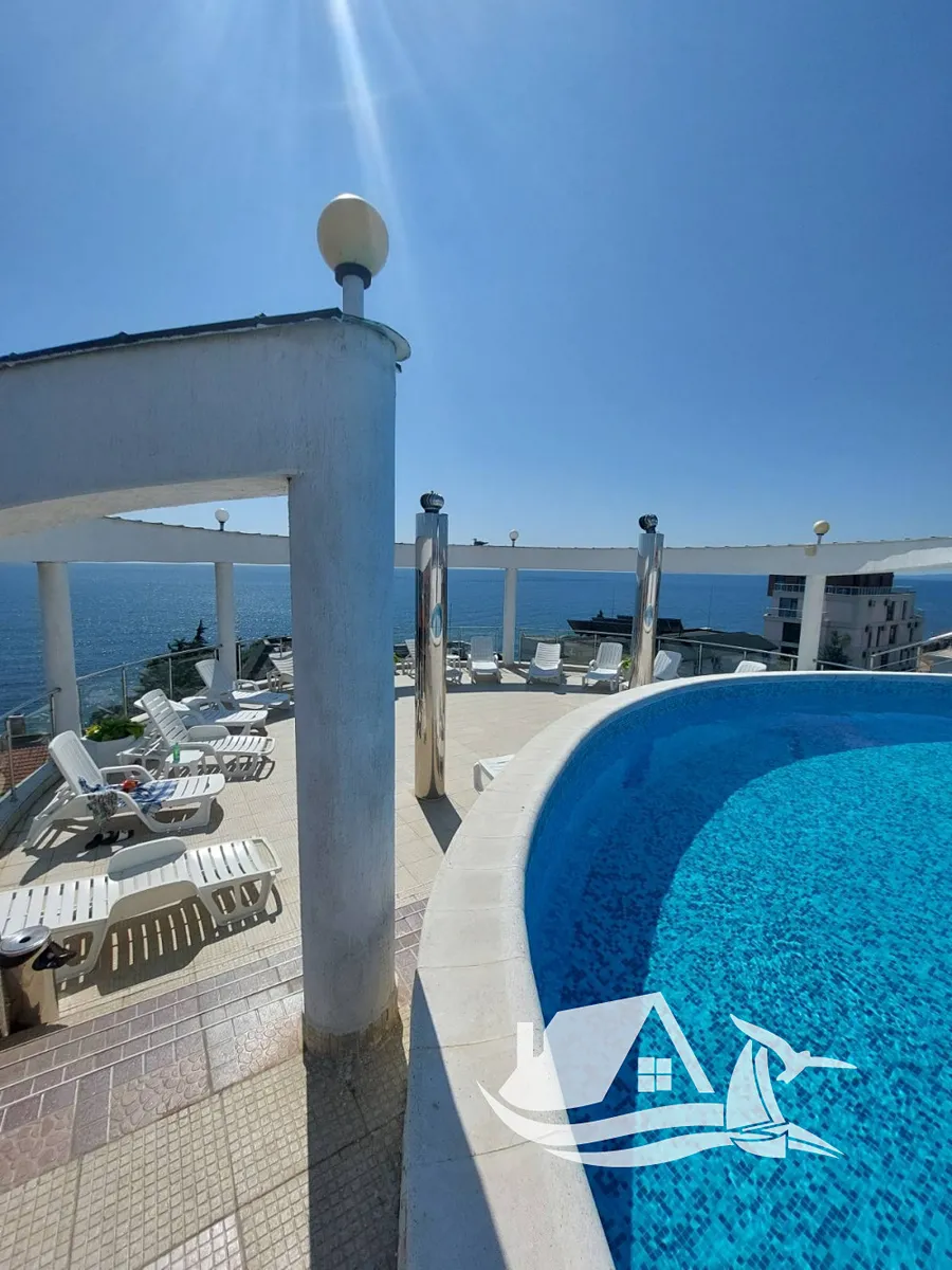 Byt o celkové ploše 58 m² se nachází ve 3. patře z 5 a sestává z prostorného obývacího pokoje, samostatné ložnice, koupelny s toaletou a velké terasy s úchvatným výhledem na moře.