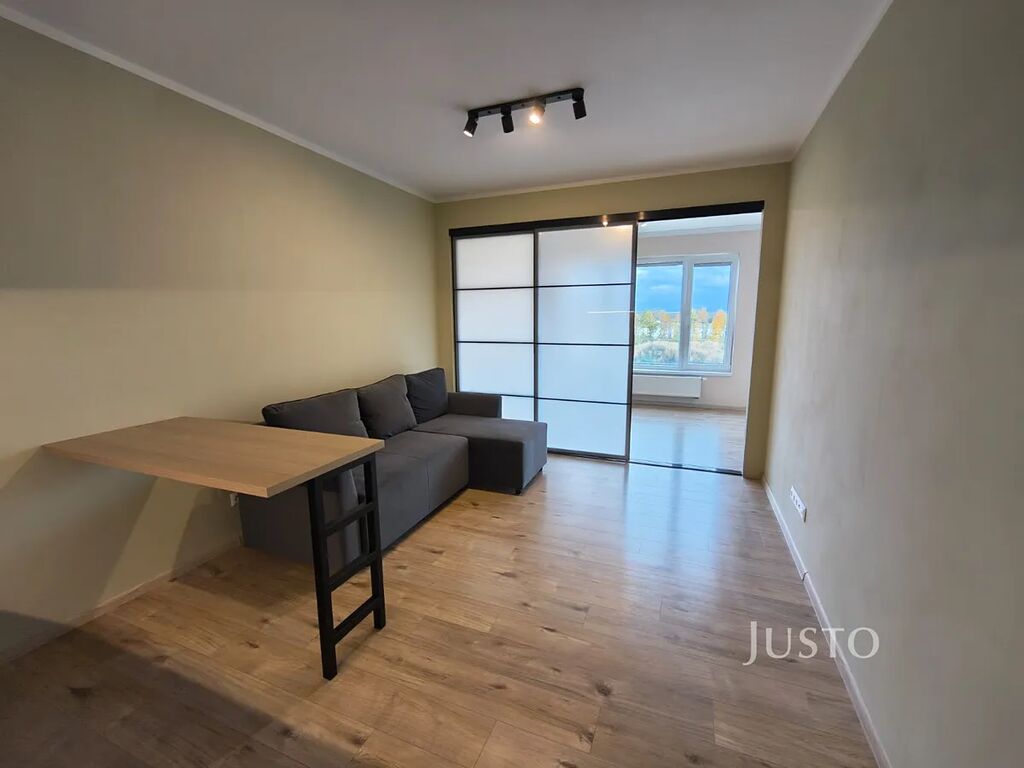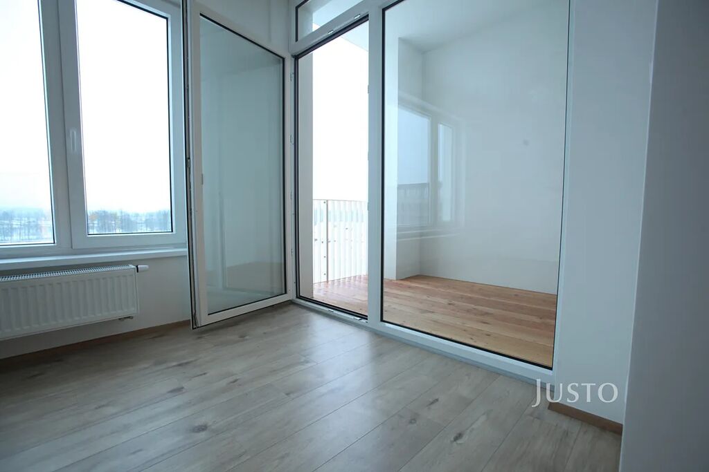 Co se týká vybavení, byt je vybaven kuchyňskou linkou s kvalitními vestavnými spotřebiči a ledničkou s mrazákem. Zbytek interiéru si vytvoříte podle svého vlastního vkusu a potřeb. Praktická posuvná stěna elegantně odděluje obývací část od ložnice, takže prostor působí útulně a zároveň si zachovává dostatek světla i volnosti.