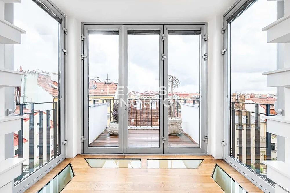 Nabízíme k pronájmu luxusní, kompletně zrekonstruovaný penthouse s přímým vstupem z výtahu, umístěný v 5. patře elegantního činžovního domu po rekonstrukci. Tento výjimečný byt se může pochlubit třemi slunnými terasami orientovanými na jih. Nemovitost se nachází v krásné lokalitě Prahy 2 - Vinohrady disponující veškerou občanskou vybaveností a dobrou dopravní infrastrukturou.