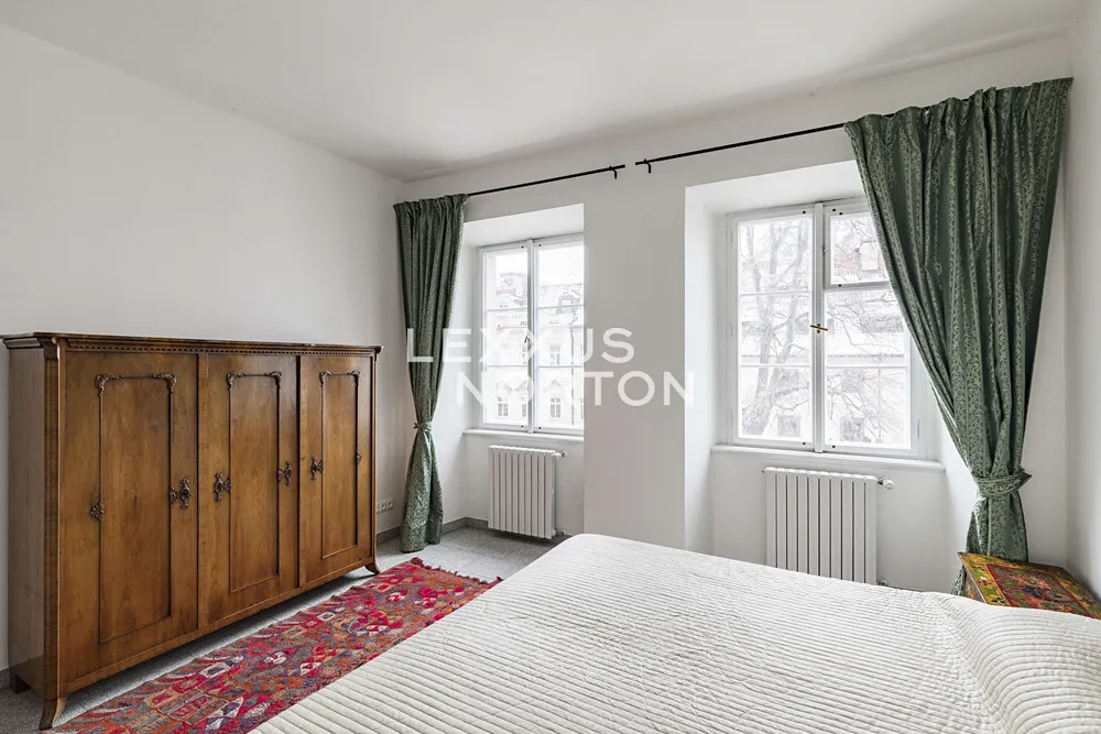 Plně zařízený stylový byt k pronájmu ve zrekonstruované historické budově nabízí předsíň, přepychový a prostorný obývací pokoj s plně vybaveným kuchyňským koutem a jídelnou, 2 ložnice, 2 světlé koupelny s vanou, sprchou, bidetem a toaletou.