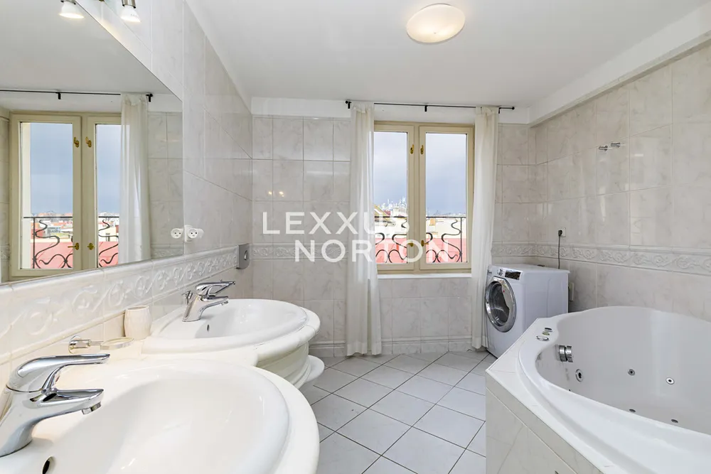 Stylový, zařízený podkrovní byt o rozloze 126,8 m2 k pronájmu v 5. patře na Praze 1 – Nové Město. Komfortní bydlení v místě, které poskytuje vše, co nabízí velkoměsto.