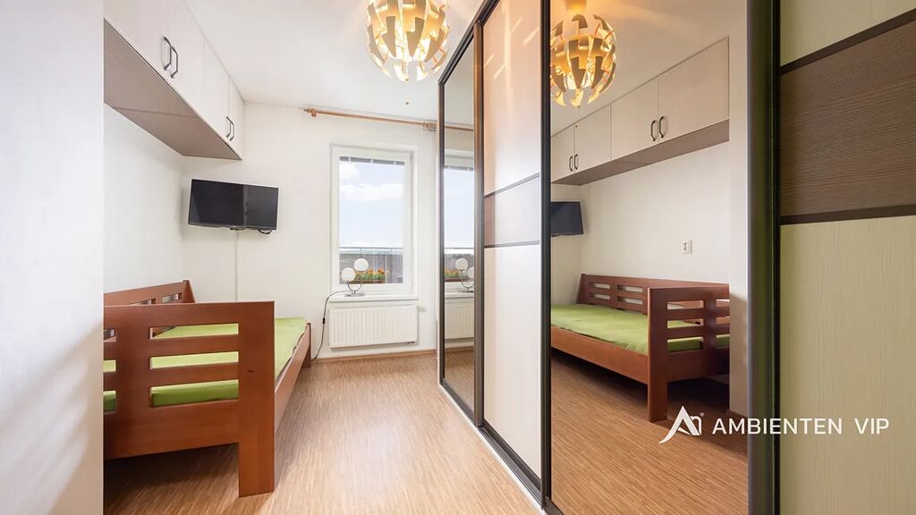 AMBIENTEN VIP si Vám dovoluje nabídnout ve výhradním zastoupení majitele mezonetový byt o dispozici 5+kk s celkovou plochou 112 m², doplněný o terasu 63,1 m², balkon 5,4 m², sklep 4,5 m² a dvě garážová stání, která jsou zahrnuta v ceně. Nemovitost se nachází v žádané a klidné části Brna – Kamechy, Brno–Žebětín, v těsné blízkosti brněnské přehrady a přírodního parku Podkomorské lesy.