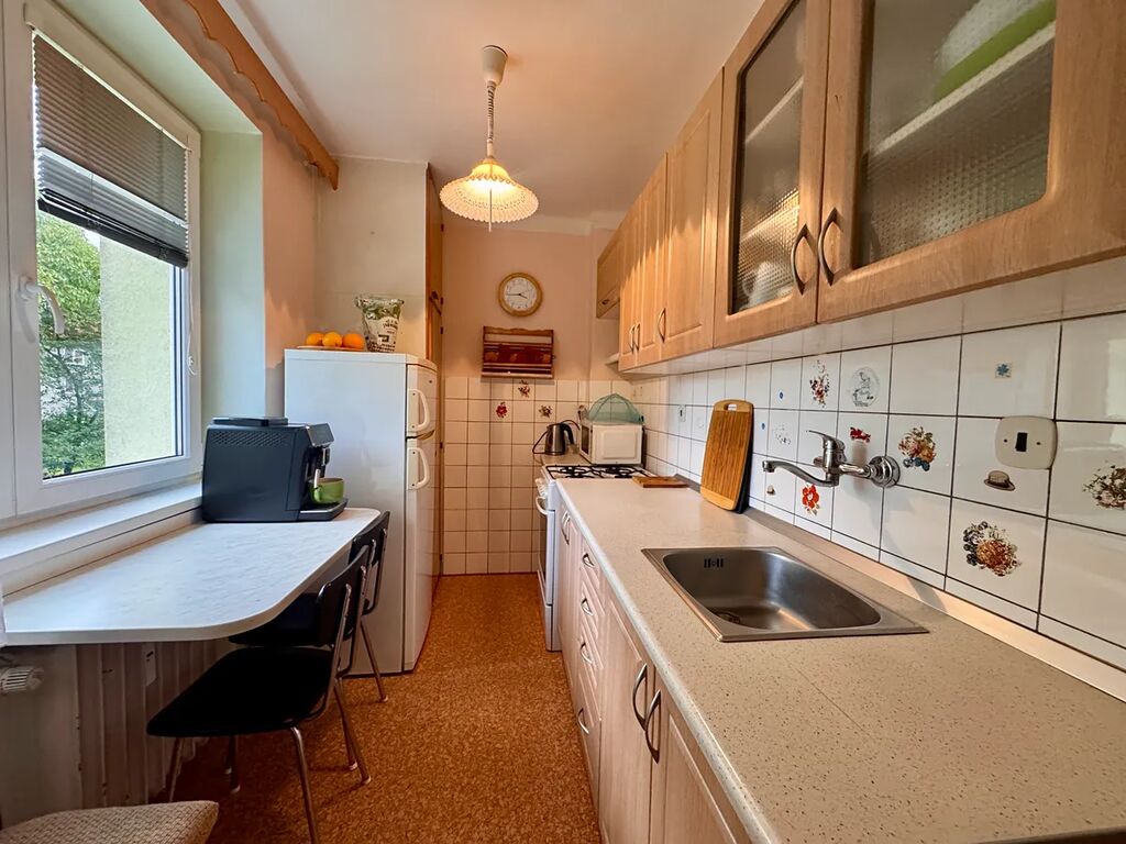 Byt je plně vybaven původním nábytkem, který je součástí pronájmu, a nabízí příjemné rodinné bydlení s výbornou dostupností do centra města.