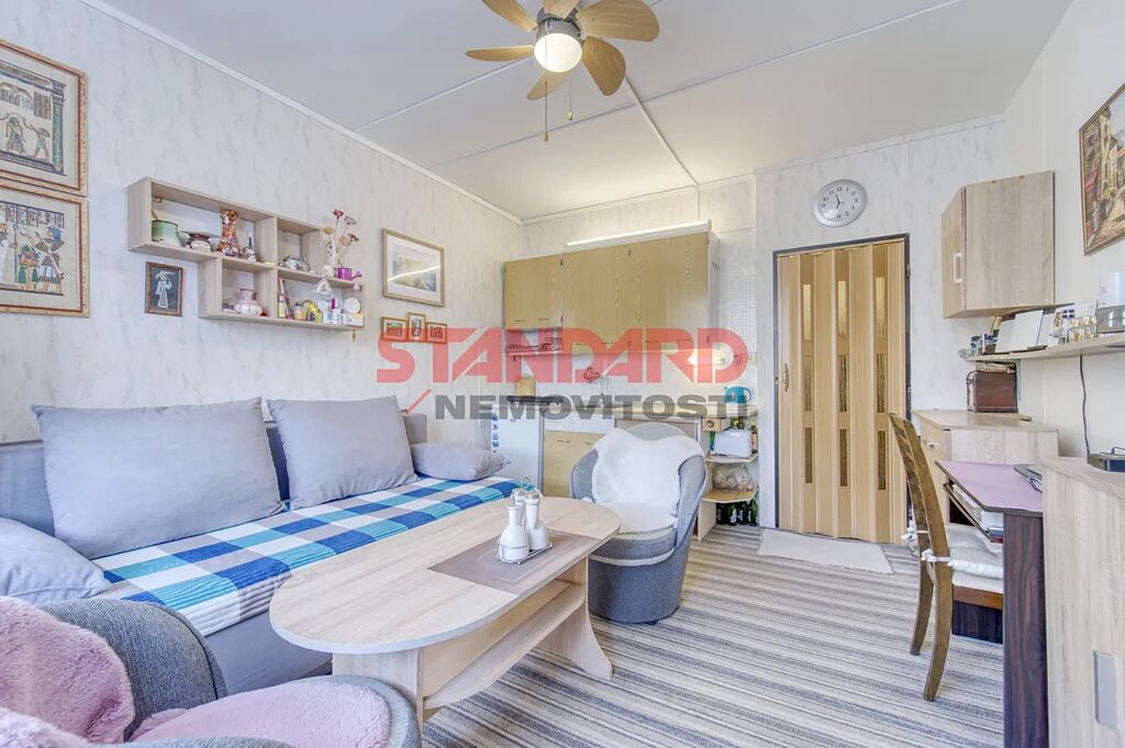 Byt tvoří hlavní pokoj s kuchyňskou linkou, předsíň s úložným prostorem a koupelna se sprchovým koutem a toaletou. Prostor je útulný a světlý, ihned obyvatelný, s možností drobných úprav dle vašich představ.