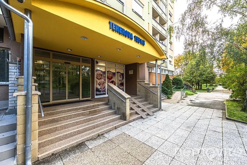 Bytová jednotka je umístěna v 10. patře kompletně revitalizovaného panelového domu, který disponuje v přízemí i svou vlastní recepcí s hlídačem.