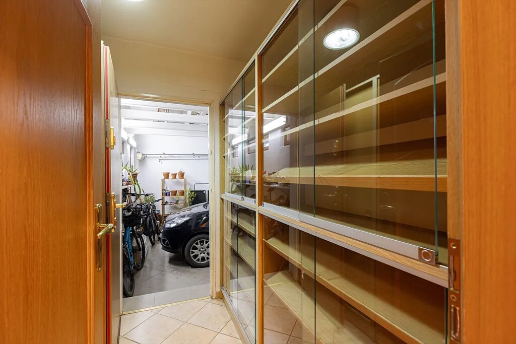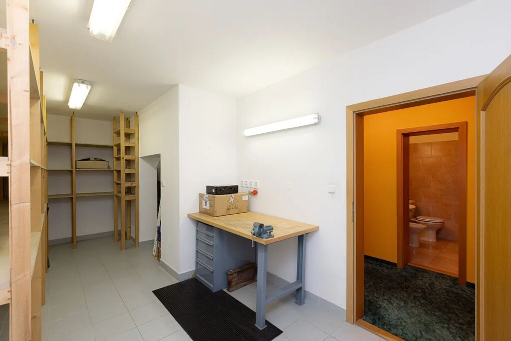 Prakticky smýšlející zaujme suterén, který funguje jako regulérní podlaží. Tedy nejen dílna, obrovská prádelna, úložné prostory a velká wellness zóna (sauna, vířivka, posilovna, 47 m2), ale také místnost pro pracovnu či pokoj pro hosty. Spoustu místa nabízí také velká a vysoká garáž, ve které lze umístit další patro (na stávající traverzy).