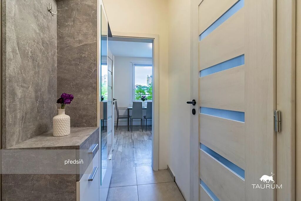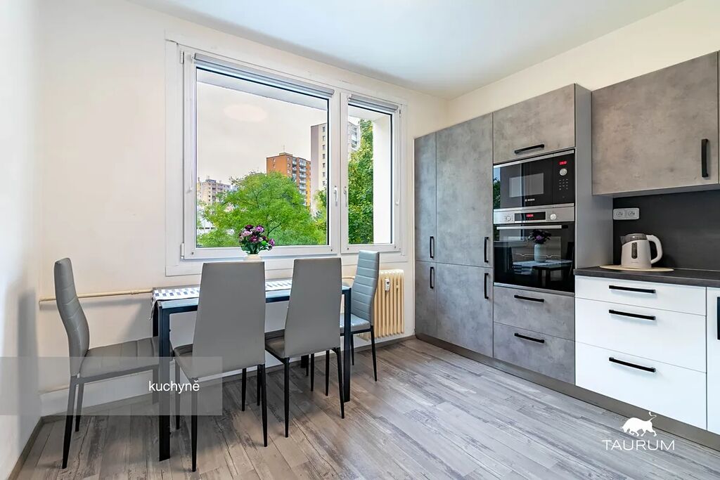 Byt se nachází v 1. patře, v revitalizovaném panelovém domě a v roce 2021 prošel zdařilou rekonstrukcí – nová elektrika, voda, vyzděné jádro, koupelna s vanou a odděleným WC, nové podlahové krytiny (dlažba, lino), nábytek, v letošním roce ještě přibyly nové bezpečnostní dveře. V pěkné a praktické kuchyni najdete vše potřebné vč. nových vestavěných spotřebičů a dostatečným místem pro stolování.