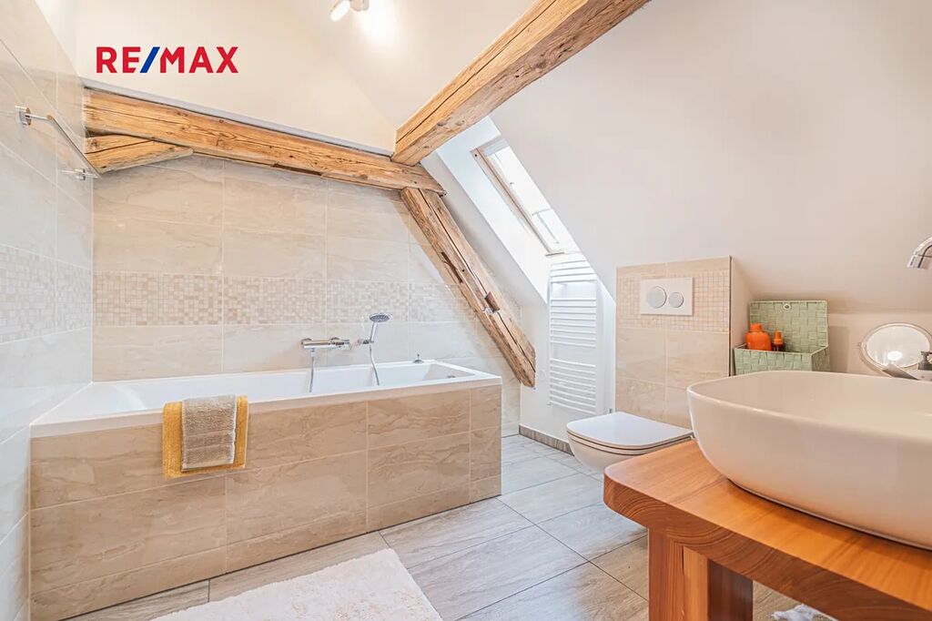 Stavba prošla dílčí rekonstrukcí zahrnující výměnu střešní krytiny a zateplení střechy stříkanou pěnovou izolací, nové betonové podlahy, rozvody elektroinstalace, příprava koupelny, vyzdění nových příček. Stavba je ve fázi rekonstrukce a přestavby na obytnou budovu s obytnou plochou cca 217 m2 + garáž, altán a sklep. Plány znázorňují budoucí stav. Výhodou je prostorná garáž (44 m2) a přiléhající altán (38 m2), který lze užívat jako další prostor k parkování, dílna atp. či k venkovnímu krytému posezení. Okouzlí Vás i potenciál klenbového vinného sklepa z červených cihel (45 m2).