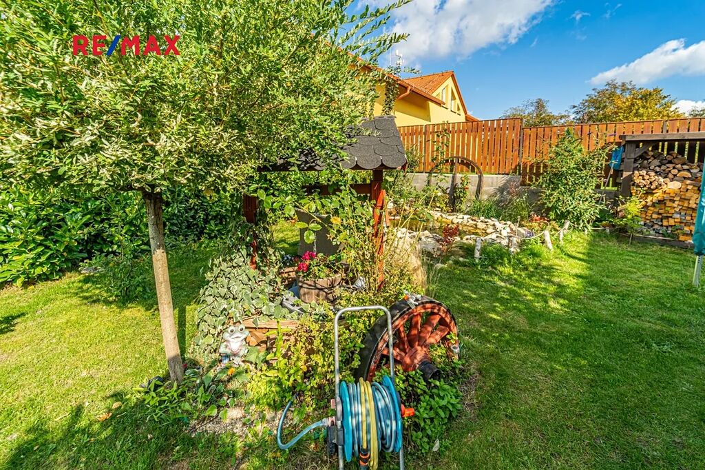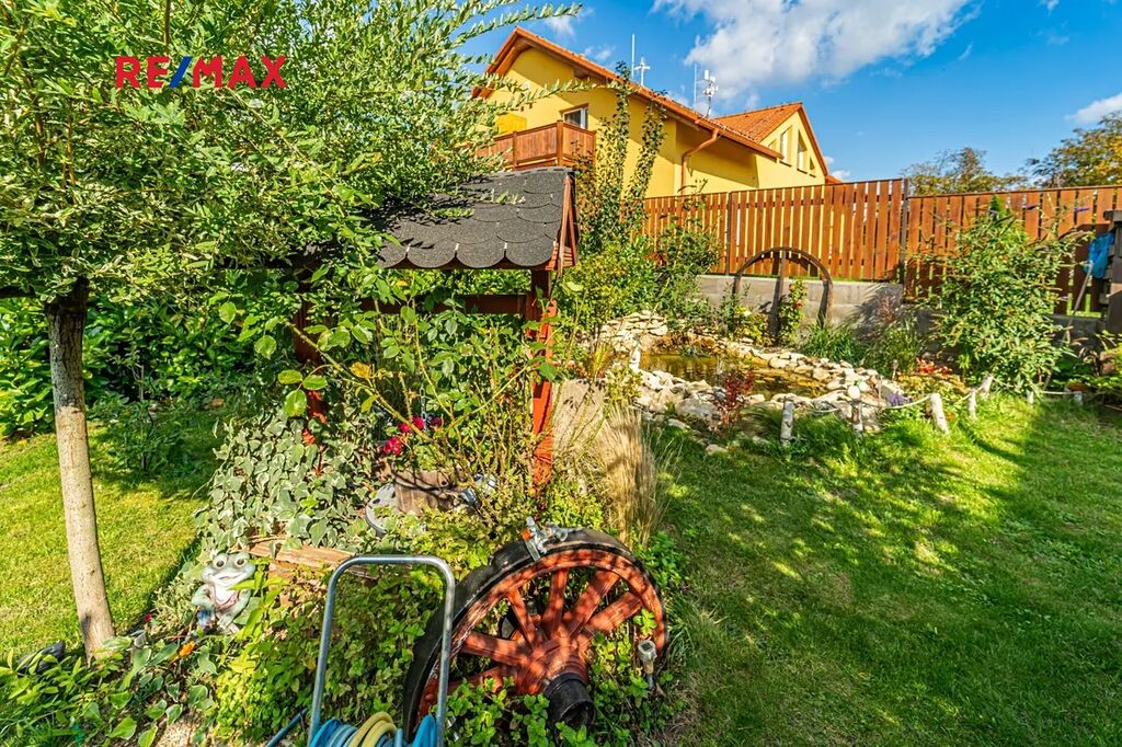 Nemovitost sestává z rodinného domu o dispozici 4+kk (96 m2) , samostatně stojící garáže s montážní jámou (20 m2), zastřešené terasy (15 m2), přírodního jezírka, zahradního domku a polozapuštěného venkovního bazénu. Bazén i jezírko disponují čistícím a filtračním zařízením. Na první pohled Vás osloví pečlivě udržovaná zahrada kolem domu, citlivě kombinující okrasné a užitkové prvky.