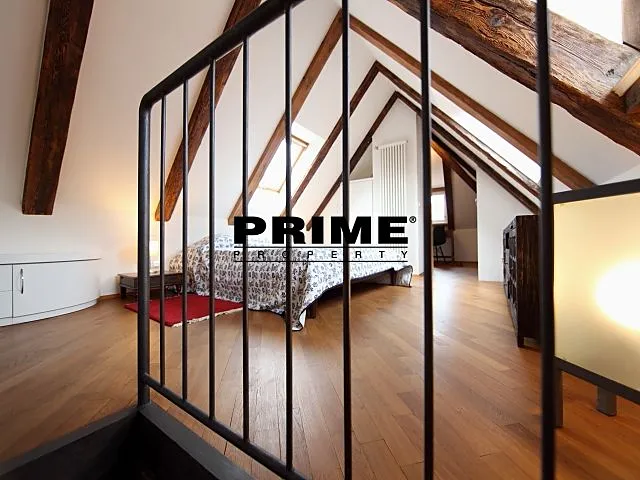 Nájemce neplatí provizi. Zrekonstruovaný, 3 ložnicový, zařízený, podkrovní atypický mezonetový byt se 2 koupelnami k pronájmu, 4+kk, 221m2, situovaný ve 3. a 4. patře kompletně zrenovovaného historického domu s výtahem a malebným zeleným nádvořím s fontánami.