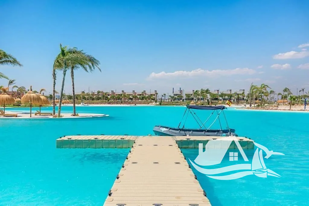 Vila je součástí uzavřeného resortu s 24hodinovou ochranou a přístupem pouze pro rezidenty. Samotný areál se rozprostírá na ploše 126 000 m² zeleně a nabízí vše, co si lze pro pohodlný život představit – cyklistické a pěší stezky, tenisové a paddle kurty, minigolf, klubovnu, parky i relaxační zóny. Jeho skutečným klenotem je umělé jezero o rozloze 17 000 m² s průzračnou vodou, bílými písečnými plážemi a palmami, které evokují atmosféru Karibiku.