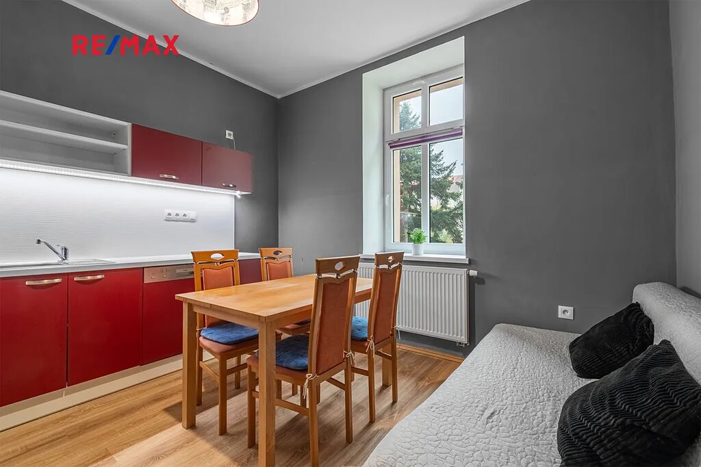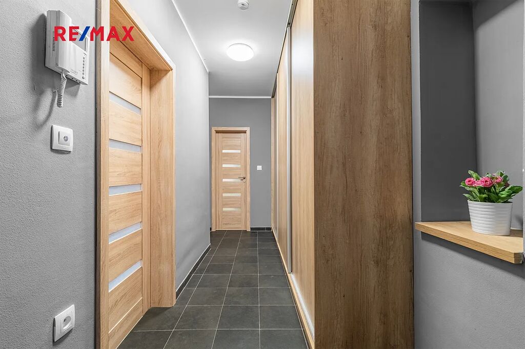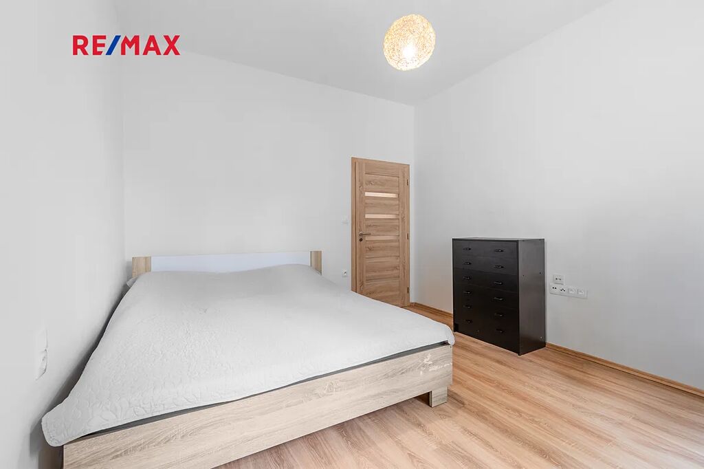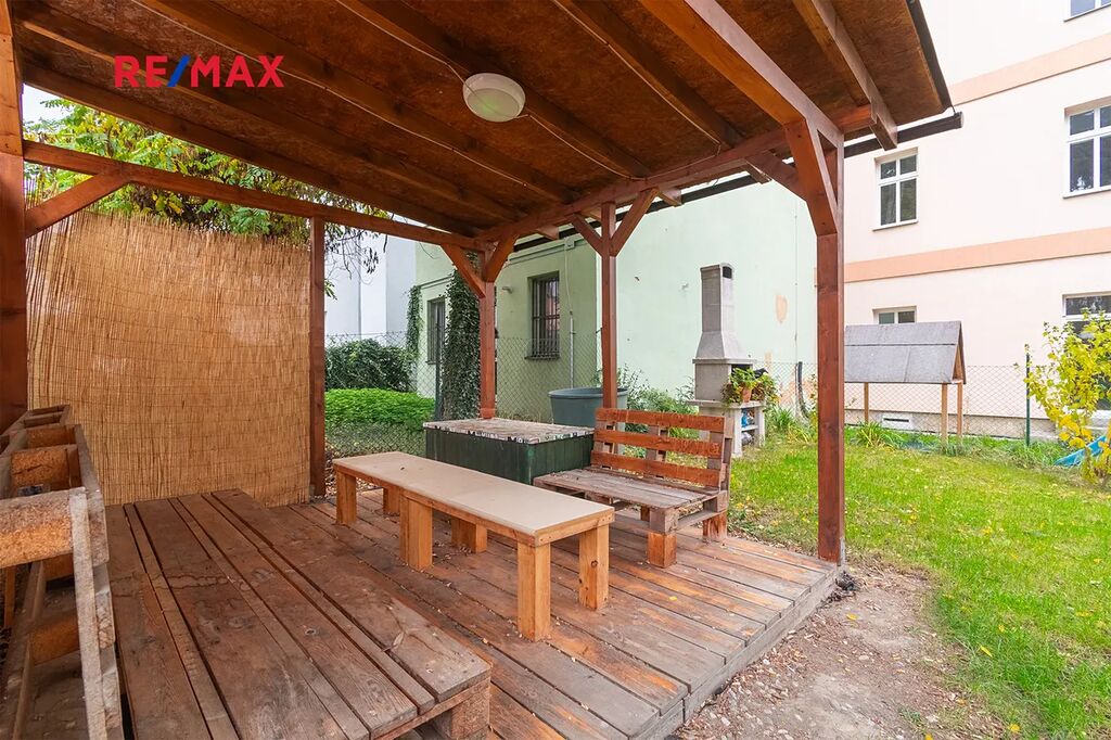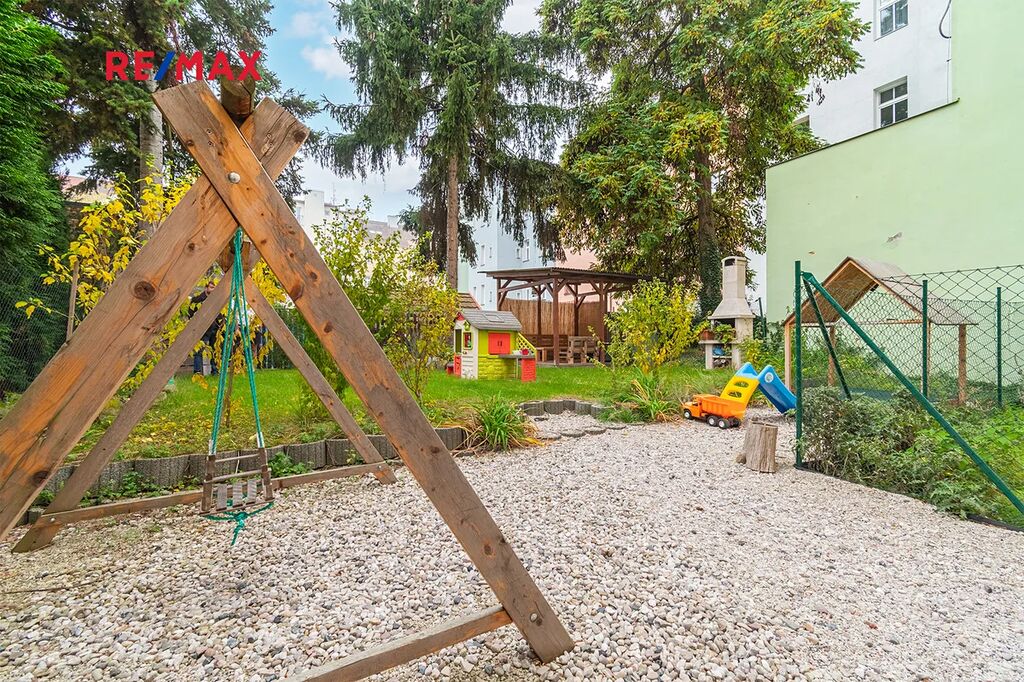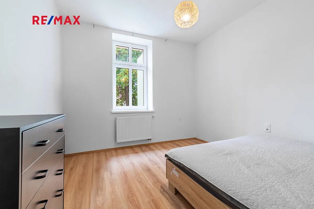 Dispozice bytu nabízí předsíň s velkou vestavnou skříní, kuchyni s vybavenou kuchyňskou linkou, samostatný pokoj a koupelnu s vanou, toaletou a místem pro automatickou pračku. Oba pokoje jsou neprůchozí, s orientací na jižní stranu, což zajišťuje dostatek světla po celý den a v zimních měsících pomáhá snížit náklady na vytápění. Výhled z oken je do společné zahrady, kterou můžete samozřejmě využívat k odpočinku, relaxaci či posezení s přáteli. Svým umístěním do vnitrobloku je v bytě zajištěn klid a naprosté ticho, takže ruchu okolních ulic se Vás týkat určitě nebude. K bytu dále náleží prostorný sklep 5,2 m2 v suterénu domu, do kterého se pohodlně vejde několik jízdních kol a ještě zbyde dostatek místa pro uskladnění například sezonních věcí. Celková užitná plocha bytu je tedy 45,4 m2. Topení a ohřev teplé vody je zajištěno dálkově.