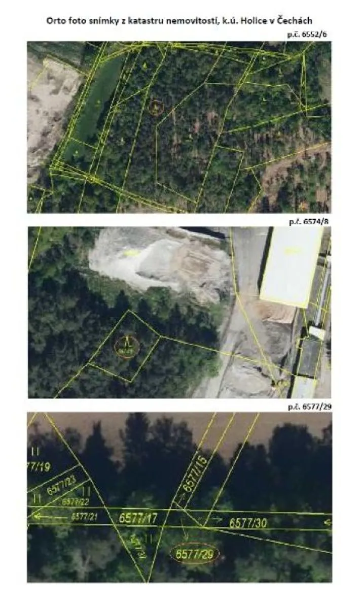 p.č. 6552/6 v k.ú. Holice v Čechách je obklopen pozemky soukromých vlastníků a pozemkem ve vlastnictví Města Holice. Na pozemku se nachází lesní porost borovice lesní přibližného stáří 30 let. Pozemek ve svém jihovýchodním cípu plochou cca 300 m2 zasahuje do chráněného ložiskového území CHLÚ 05470000 Ostřetín a výhradního ložiska cihlářské suroviny B3 054700 Holice. Ochranou a evidencí ložiska je pověřena organizace Wienerberger s.r.o. Pozemek p.č. 6577/29 - vodní plocha se nachází mezi zemědělsky obhospodařovanými pozemky (p.č. 6577/18, p.č. 6577/45 a další) a lesním pozemkem p.č. 6552/6. Pozemek tvoří část příkopu pro odvod povrchových a dešťových vod.