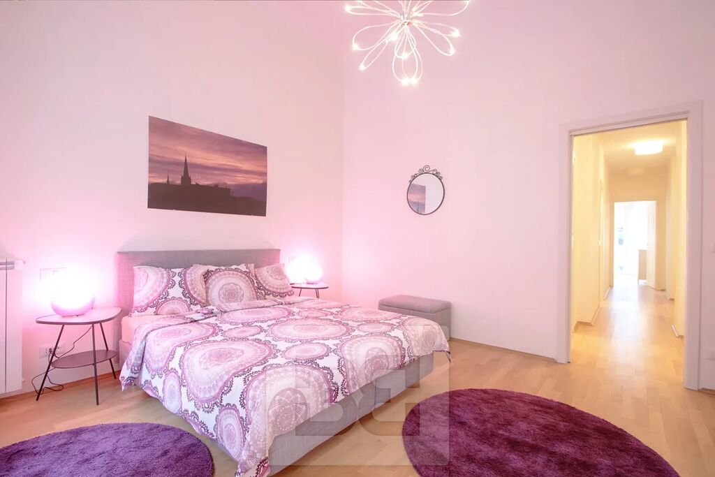 Exkluzivně Vám nabízíme byt 3+1 (103m2) s balkonem/terasou (8m2) situovaný ve druhém patře historického domu s výtahem na Praze 2, ul. Mánesova (nachází se v klidné nehlučné zóně v ulici Mánesova, jen kousek od výborných restaurací a příjemných barů). Byt je plně vybavený a se sestává z prostorné předsíně, odkud je vstup do dvou ložnic (jedna je laděna do světlých lesklých tónů a druhá má naopak kovové prvky sladěné s teplými fialovými tóny) a obývacího pokoje s rozkládací sedačkou, lenoškou a velkoplošnou obrazovkou, který je propojen s jídelní sestavou pro 6 hostů. V kuchyni je příjemné posezení a plně vybavená kuchyňská linka všemi spotřebiči. Dostanete se odsud také na velkou terasu směrovanou do vnitrobloku, kde si můžete posedět u sklenice vína a relaxovat v kruhu přátel.