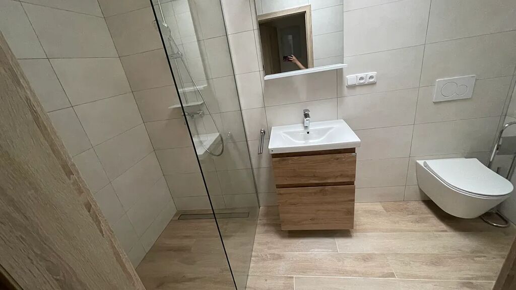 Nabízíme k pronájmu krásný byt 1+kk v novostavbě viladomu v lukrativní části Zlína - Prštné. Vybavení bytu je na nejvyšší úrovni, hliníková okna, venkovní žaluzie s elektrickým ovládáním, moderní kuchyňská linka na míru včetně všech kuchyňských spotřebičů (myčka, varná deska, trouba, mikrovlnná trouba a lednice). Podlahové topení - tepelné čerpadlo, klimatizace. Byt se nachází v přízemí domu. Dispozice: vstupní chodba, prostorný pokoj s kuchyňským koutem, koupelna se sprchovým koutem, umývadlem se skříňkou, pračkou a WC. Parkovací místo před domem. Výměra 42 m2.