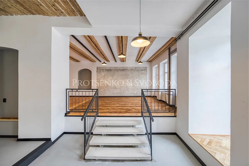 Dispozice nabízí velkorysý otevřený prostor, menší kuchyňku a sociální zázemí. Díky své variabilitě se prostory skvěle hodí pro kanceláře, showroom, designové studio, ateliér, galerii, obchod nebo provozovnu služeb.