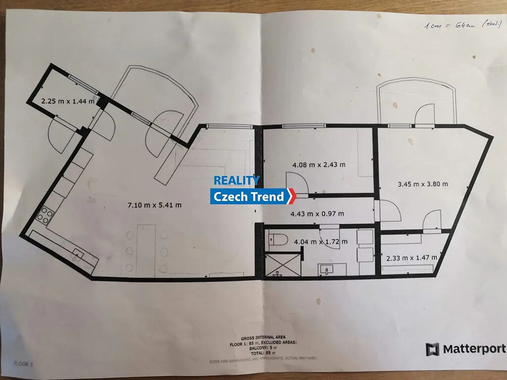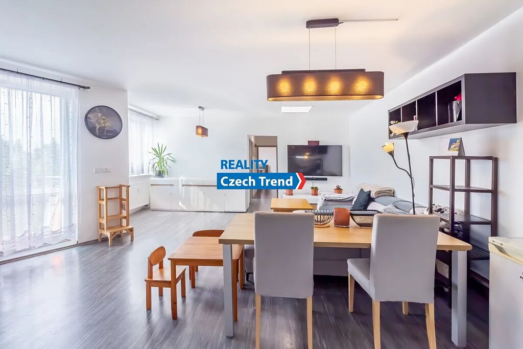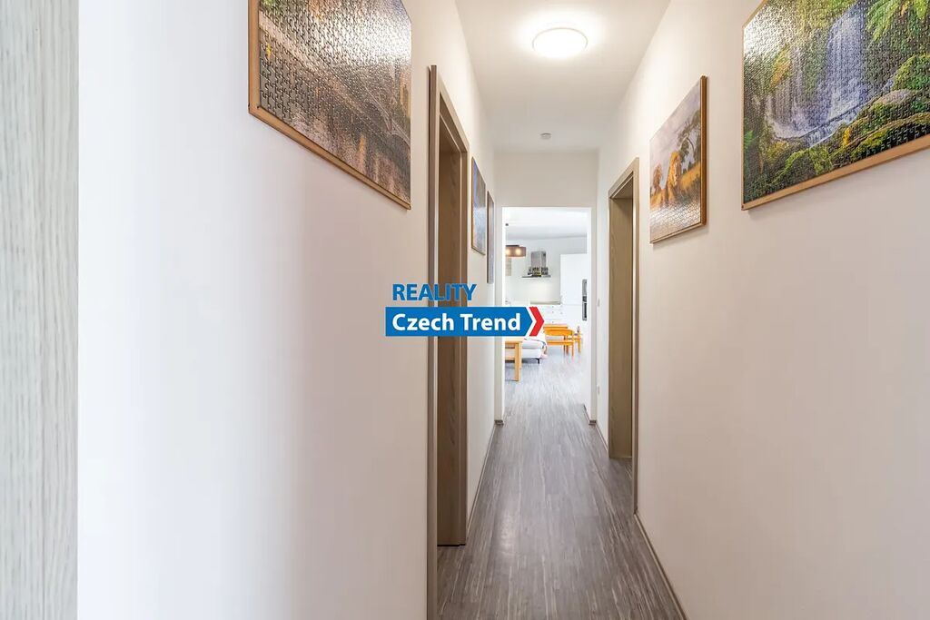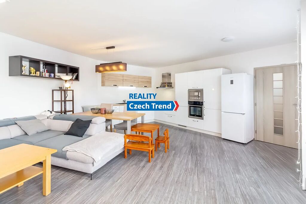 Bytová jednotka s užitnou plochou 84 m² se nachází v 1. patře cihlového bytového domu postaveného v roce 2012. Součástí bytu je kompletně vybavená kuchyně včetně vestavěných spotřebičů a obývacím prostorem, vstupní předsíň, ložnice s chytře řešenou zabudovanou šatnou, dětský pokoj, chodba, koupelna a toaleta. Okna a balkóny orientovány na západ. Vytápění je zajištěno pomocí ústředního topení, ohřev teplé vody bojlerem.