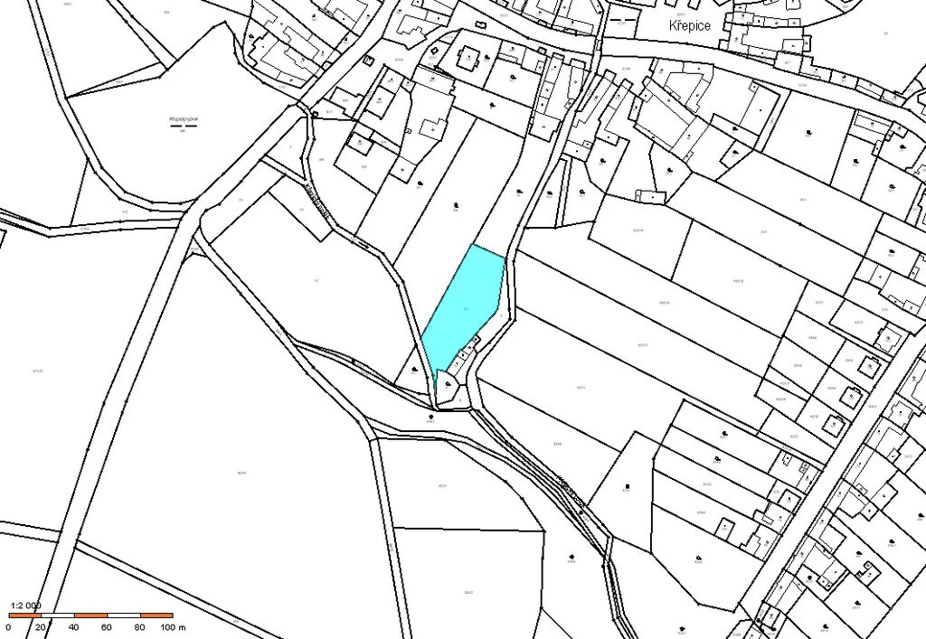 Nabízíme k prodeji pozemek o výměře 2 106 m2 v těsné blízkosti zástavby, rychle se rozvíjející obce Křepice. Pozemek je nyní zapsán jako orná půda. Sousední pozemky jsou vedené jako zahrady či sady, obec v tomto směru rozšiřuje plochy určené k bydlení. Parcela je umístěna při okraji obce a je přístupná z obecního pozemku, ke kterému vede obecní cesta. Z jedné strany je lemovaný potokem a z druhé oplocenou zahradou.