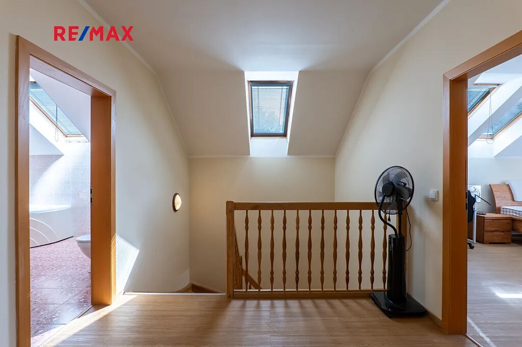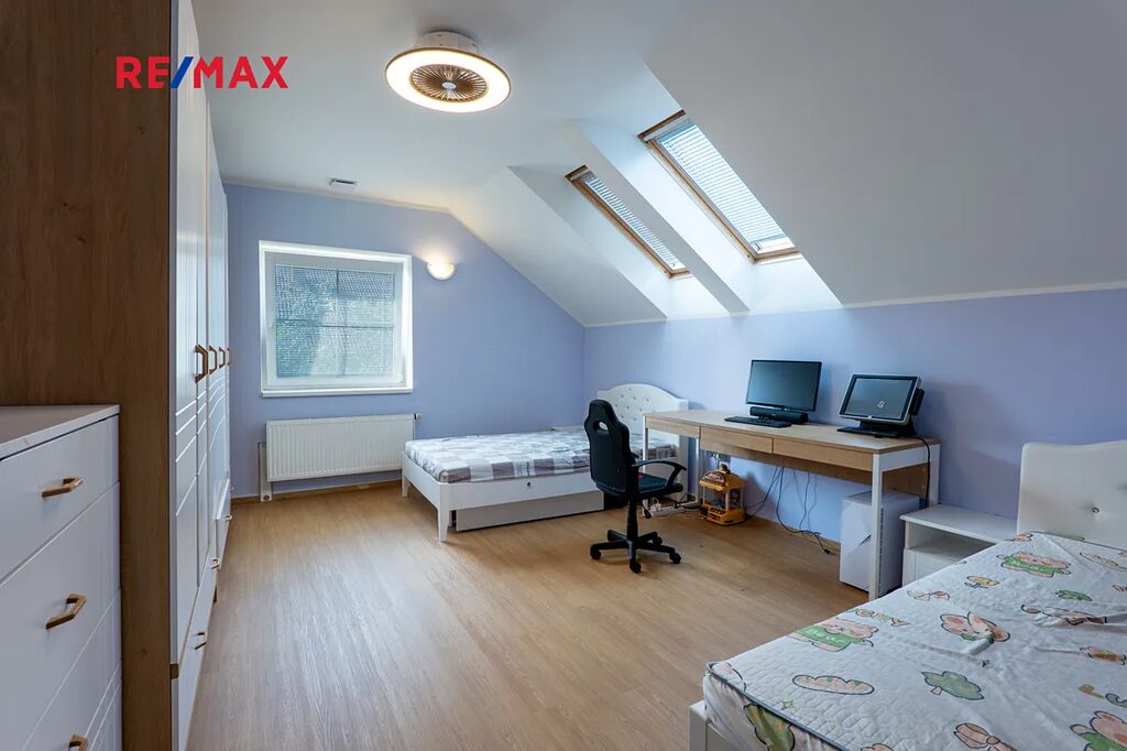 V prvním patře je hlavní ložnice s příjemnou atmosférou a dostatkem úložného prostoru. Plocha tohoto pokoje je 22,22 m². Další jsou zde 2 ložnice s plochou 22,20m² a 18,40m²
