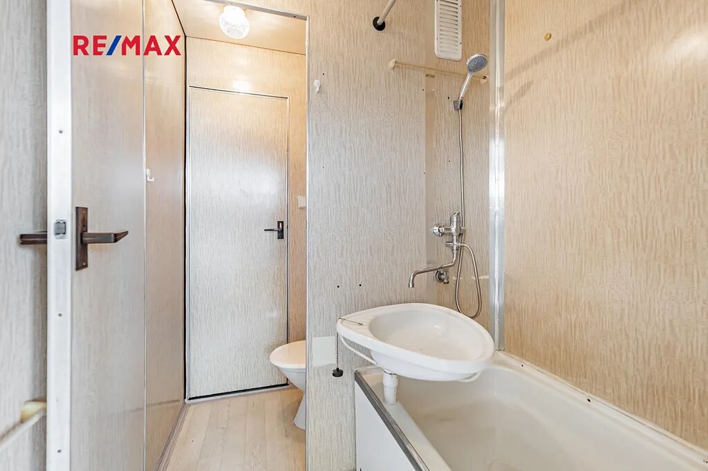 Nemovitost se nachází v sedmém patře panelového domu s výtahem. Byt Vám nabídne prostornou předsíň, koupelnu s vanou, toaletu a spolu s tím jednu obytnou místnost šikovně přepaženou příčkou, která Vám dodá na pocitu dvou místností, z nichž jednu můžete využít jako ložnici. Kuchyně samozřejmě nechybí. Ta je spolu s obývacím prostorem orientovaná na jižní stranu s pěkným výhledem, díky čemuž je byt po celý den přirozeně světlý, aniž by slunce svítilo přímo do oken. A pokud byste potřebovali více úložných prostor, tak v přízemí domů najdete sklepní kóji k tomu určenou. Rozmístění jednotlivých místností a jednotlivé výměry lze vidět na přiloženém půdorysu.