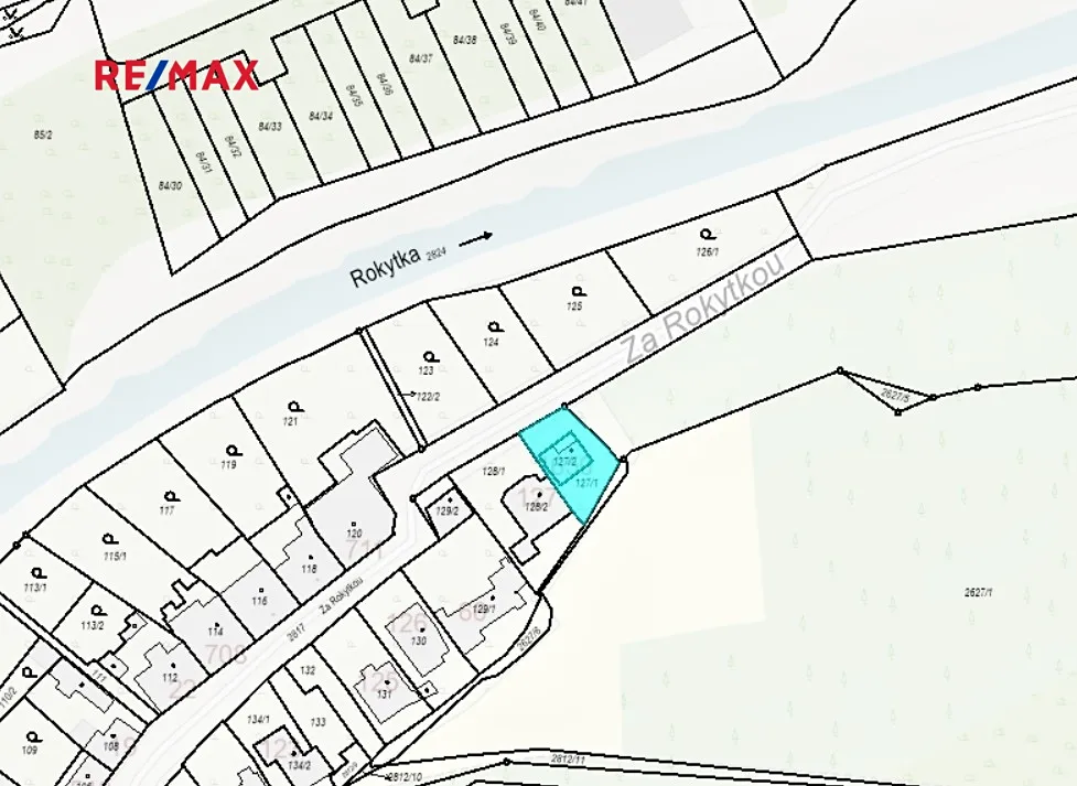 Adresa nemovitosti - Za Rokytkou 1650/32, 198 00 Praha 14 - Kyje.Předmětem prodeje jsou parcely č. 127/2 - zastavěná plocha a nádvoří o výměře 49 m2 a č. 127/1 - jiná plocha (zahrda) o výměře 146 m2.