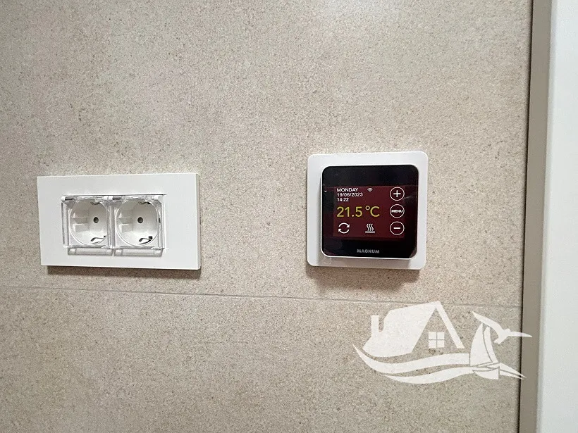Střecha je izolována 15 cm silnou vrstvou stiraduru, což zajišťuje skvělou tepelnou účinnost v létě i v zimě. Dům je navíc připraven na instalaci jacuzzi ve dvoře – přívod vody a elektřiny je již zajištěn. Apartmán je vybaven moderními sanitárními prvky a elegantním koupelnovým nábytkem, takže je připraven k okamžitému nastěhování.