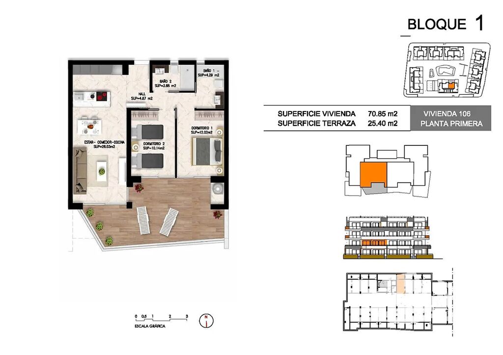 Na pomezí Torrevieji a Orihuela Costy, v oblíbené oblasti Los Altos, vzniká nový rezidenční komplex, který přináší moderní styl života pod španělským sluncem. Tento elegantní apartmán o dispozici 3+kk a celkové ploše 75 m² nabízí vše, co si přejete od středomořského bydlení – komfort, světlo, prostor a výhledy, které vybízejí k odpočinku i inspiraci.